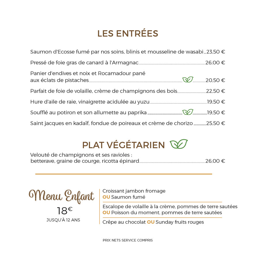 ENTRÉE + PLAT + DESSERT : 24€